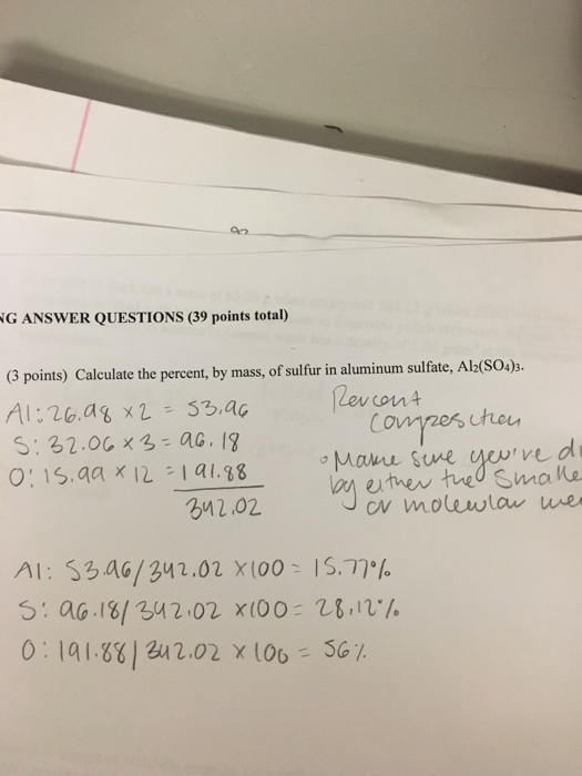 Solved Calculate The Percent By Mass Of Sulfur In Aluminum Chegg Com